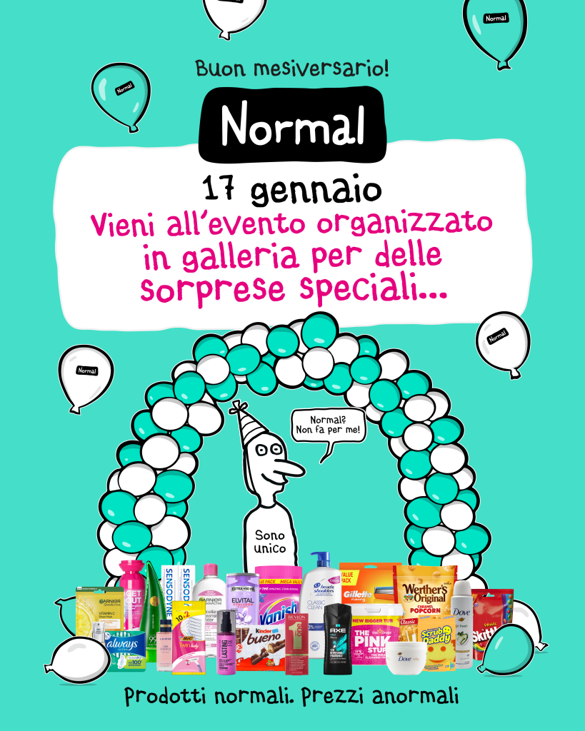 Perchè NORMAL è molto di più di prezzi fissi e bassi e brand conosciuti. Il nostro obiettivo è che visitare un nostro negozio sia sempre un’ esperienza nuova e unica. Ecco perché NORMAL, oltre all’assortimento abituale di marchi noti, rinnova costantemente gli scaffali e i banconi, in modo che ci siano sempre nuovi prodotti da scoprire. La struttura “a labirinto” dei nostri negozi ti invita a fare una caccia al tesoro tra i tanti articoli interessanti di marchi noti e sconosciuti, ed è facile riempire la borsa della spesa, senza svuotare il conto in banca.