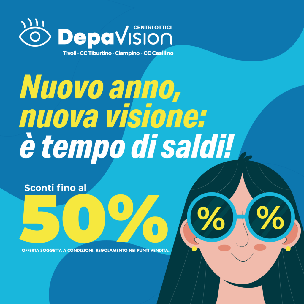 Saldi DepaVision SALDI FINO AL -50% È il momento giusto per cambiare look e vedere il nuovo anno con occhi diversi. Ti aspettiamo da Depavision!